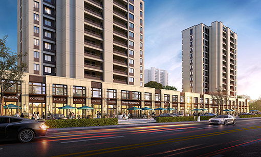 • 高層單體低密排屋景觀高層景觀大門商鋪沿街